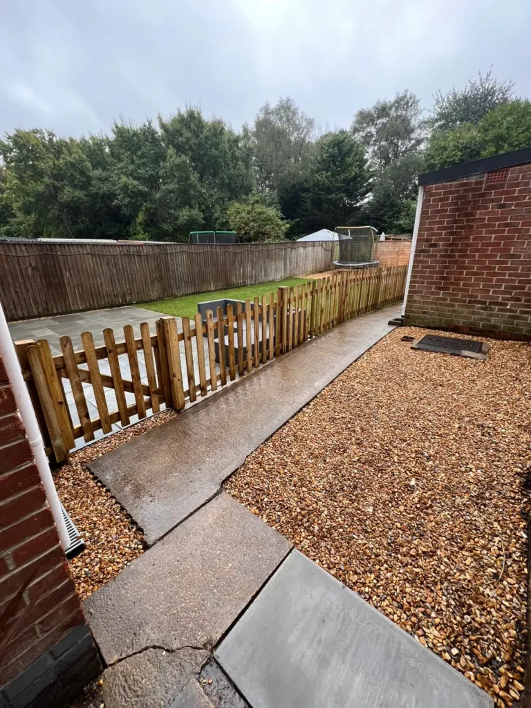 We installed new turf for a clean, green finish, added shingle for texture and practicality, and created a new patio area perfect for relaxing or outdoor dining. To complete the transformation, we fitted a smart picket fence around the perimeter, tying the whole layout together beautifully.
